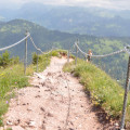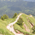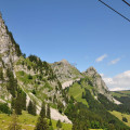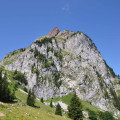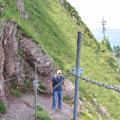 Nun beginnt der steile Aufstieg mit immer imposanter werdenden Kulisse. An schönen Tagen haben Dutzende von Wanderern dasselbe Ziel. Damit man immer weiss, wie lange der Aufstieg noch dauert, sind die Kurven nummeriert und in regelmässigen Abständen Höhenmeter notiert. Vor dem Schlussaufstieg gibt ein luftiges Gratweglein, gut gesichert mit beidseitigen Eisenketten. Auf dem Gipfel des Mythen kann man sich in einem kleinen Selbstbedienungsrestaurant verpflegen und dabei das ganze Alpenpanorama vom Säntis über die Rigi bis zur Jungfrau auf sich wirken lassen. Wie im Flugzeug blickt man ins Tal, vom Lauerzersee über Schwyz bis zum Vierwaldstättersee.